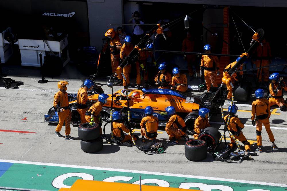 - El cambio de gomas extra le ha dejado noveno a falta de 20 vueltas para el final. Sin embargo, el piloto de McLaren ha remontado hasta la quinta plaza e incluso ha peleado por el podio en las vueltas finales, con una lucha rueda a rueda con su compañero Lando Norris, que también le ha propiciado un leve calentamiento de motor. Carlos ha tenido que refrigerar la mecánica y cruzar la línea de meta quinto, en un día muy positivo para el equipo McLaren.
