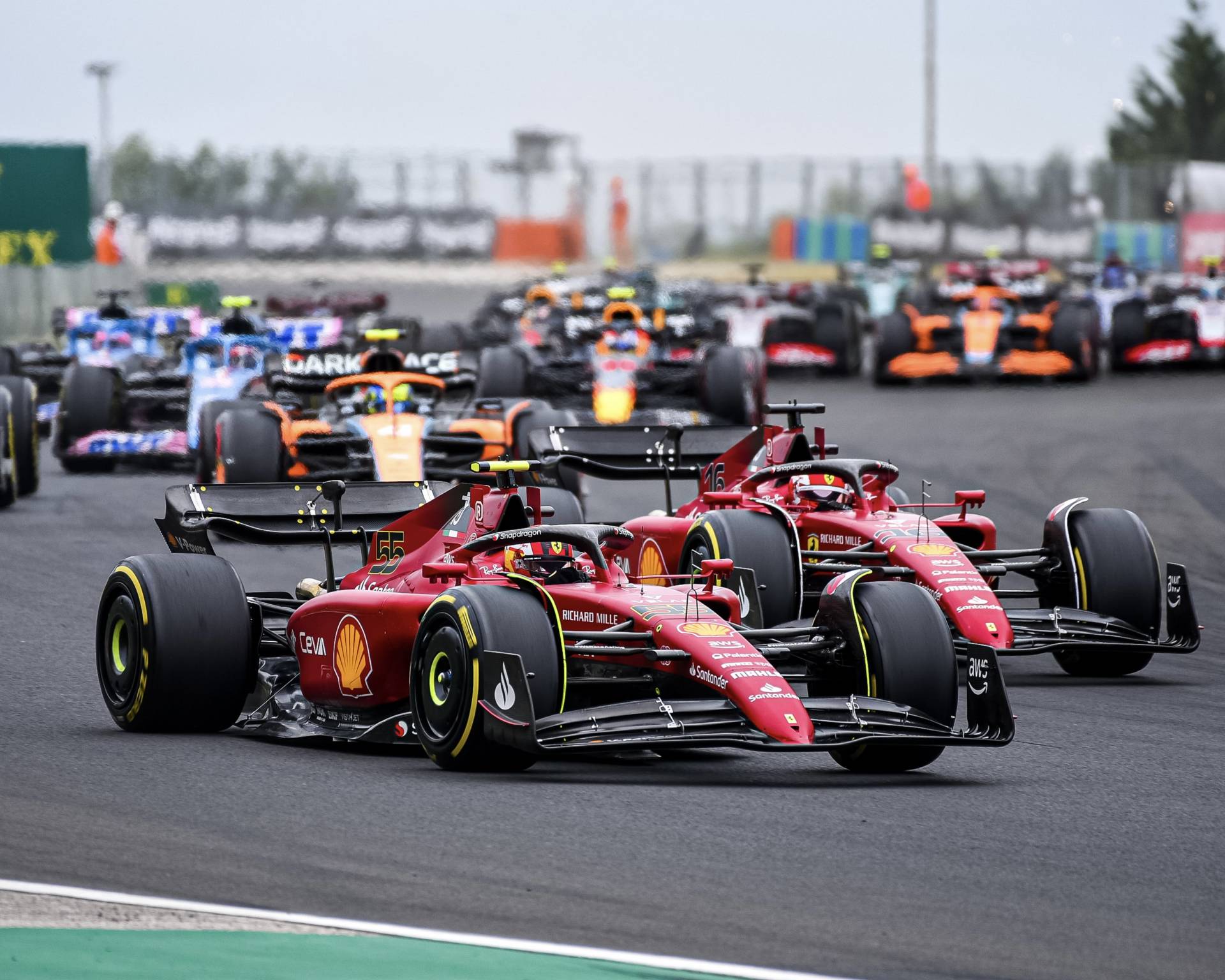 - Carlos ha salido segundo con el neumático medio y ha hecho su primera parada justo después que el líder George Russell, pero ha caído al tercer puesto por detrás de su compañero Charles Leclerc, que ha entrado más tarde.