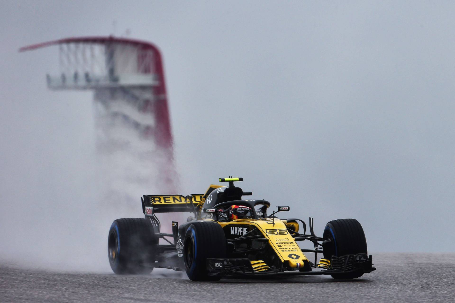 - Carlos sólo ha completado dos vueltas de instalación a la pista de Austin en la segunda sesión de entrenamientos libres con el objetivo conservar los neumáticos de agua extrema, cuya dotación es escasa por reglamento, y que podría necesitar para la clasificación.