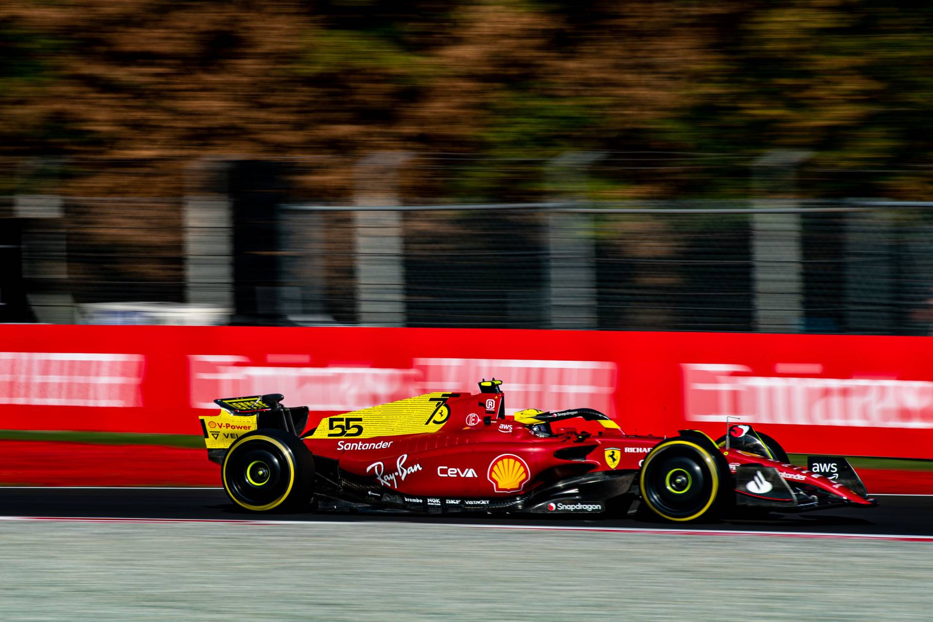- Carlos ha copado la tabla de tiempos en la segunda sesión de entrenamientos libres, donde ha estrenado la decoración especial con la que Ferrari celebra el 75º aniversario de su primer coche.