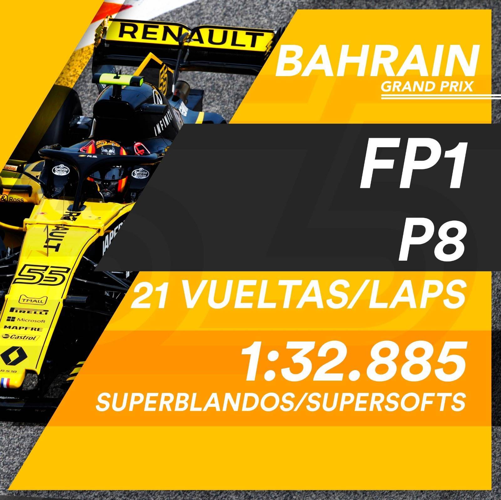 - Sesión sin problemas para el piloto de Renault Sport Formula One Team; ha trabajado con los compuestos medio y superblando de neumáticos.